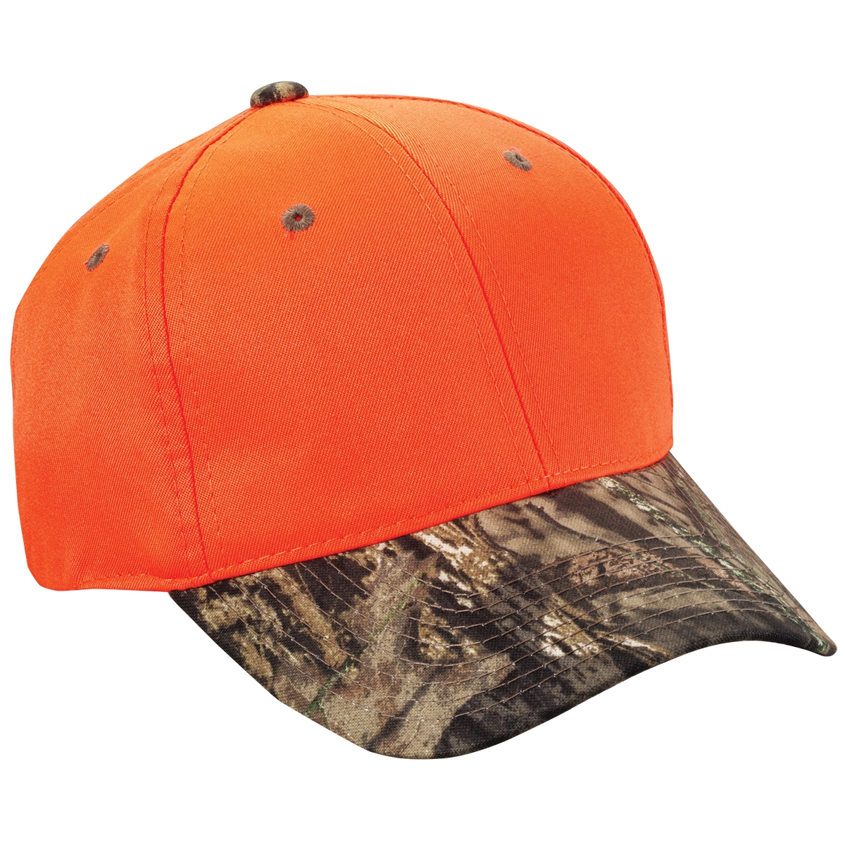 Cotton/Polyester Blend. Structured, Mid-profile, Six-panel, Brown Eyelets, Camo Button