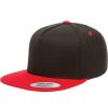100% Cotton Twill , structured , High Profile, 3 3/4″ Crown , 5 panel, Green Undervisor , Flat Bill , Sewn Eyelets , Snapback Closure