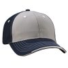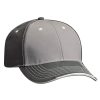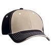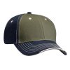 100% Cotton, Chino Twill, Structured, Mid-profile, Six-Panel, Precurved accent stitch layred sandwich visor, Elastic Velcro Closure.