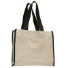 100% Heavy Canvas, 12 oz. 20½” Web Canvas Handles, 9″ Drop. 14″W x 15″H x 4″D, 13.7L. Case Pack: 96